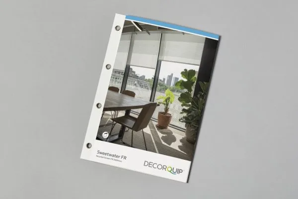 Another fabric that will stand out to environmentally conscious clients is Sweetwater in our Capital Collection range. Sweetwater is fire-retardant screen fabric is not only made recycled PET but specifically PET that has been salvaged from subsurface ocean waste around Europe.