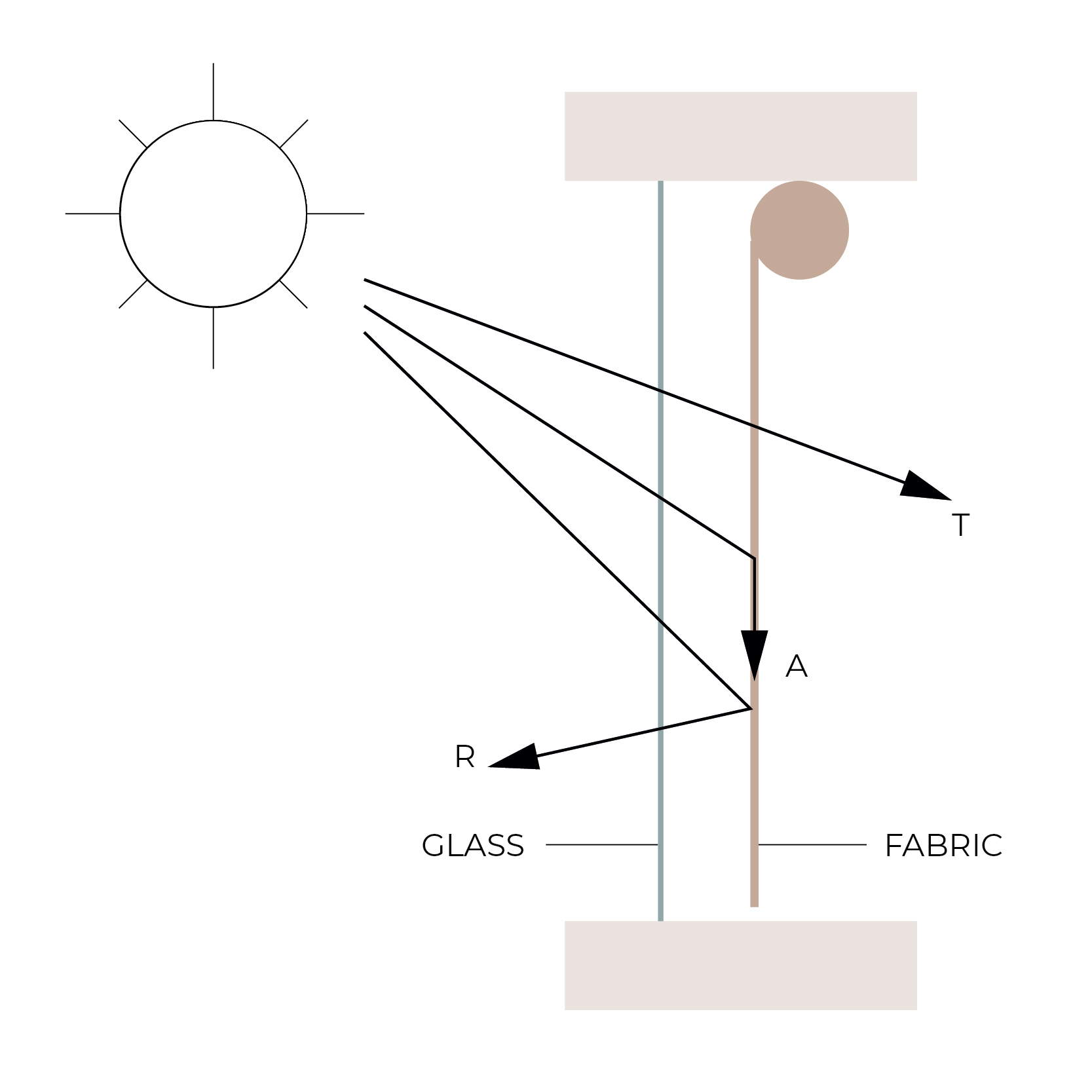 When you browse our fabric range for internal blinds, you’ll notice a set of technical values on certain fabrics, such as Ts, Rs, As, Tv, Rv, Av, and gtot.