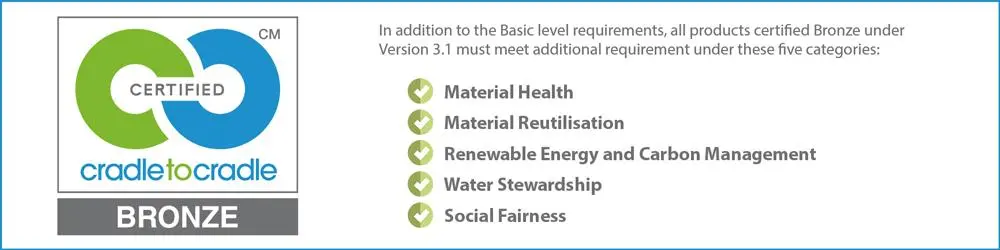 The hard work that has gone into developing such a special product has not gone unnoticed and we’re pleased to say that Sweetwater is Cradle to Cradle Certified™ Bronze. The certification is a globally recognised measure of safer, more sustainable products made for the circular economy.