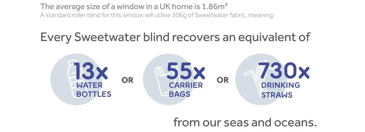 Even only taking standard roller blind fabrics into consideration, Sweetwater stands out as an amazing product, but what makes it truly special is that it is made from 100% recycled ocean plastic.