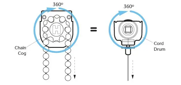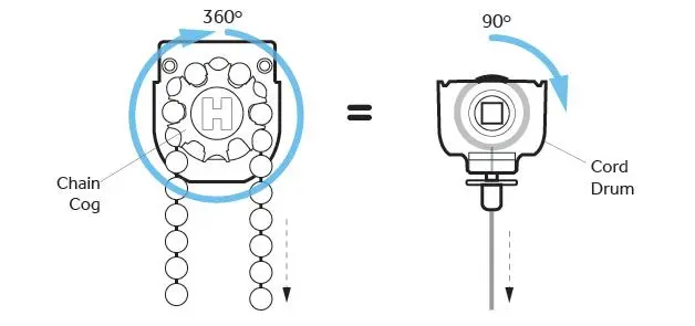 Blinds with 1:1 mechanisms are ideal for smaller, lighter blinds. Also if you want to avoid drilling the walls to install a chain tensioner, the system is suitable to use a cord breakaway device to render your blind child safe, therefore easier to fit. Another advantage of a 1:1 mechanism is that it is faster when operating the blind.