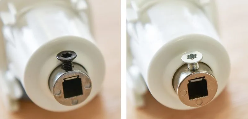 If the blind has been fitted, you’ll be able to tell straight away if you have a 1:1 or a 1:4 mechanism. If the blind is going up slower than you are pulling the chain, then you have a 1:4 mechanism. If the blind is going up almost as fast as you are pulling the chain, then you have a 1:1 mechanism. However, before you have fitted the blind, the different standard mechanisms look identical – except for one small detail – the collar grub colour. It’s black on a 1:1 mechanism and silver on a 1:4.