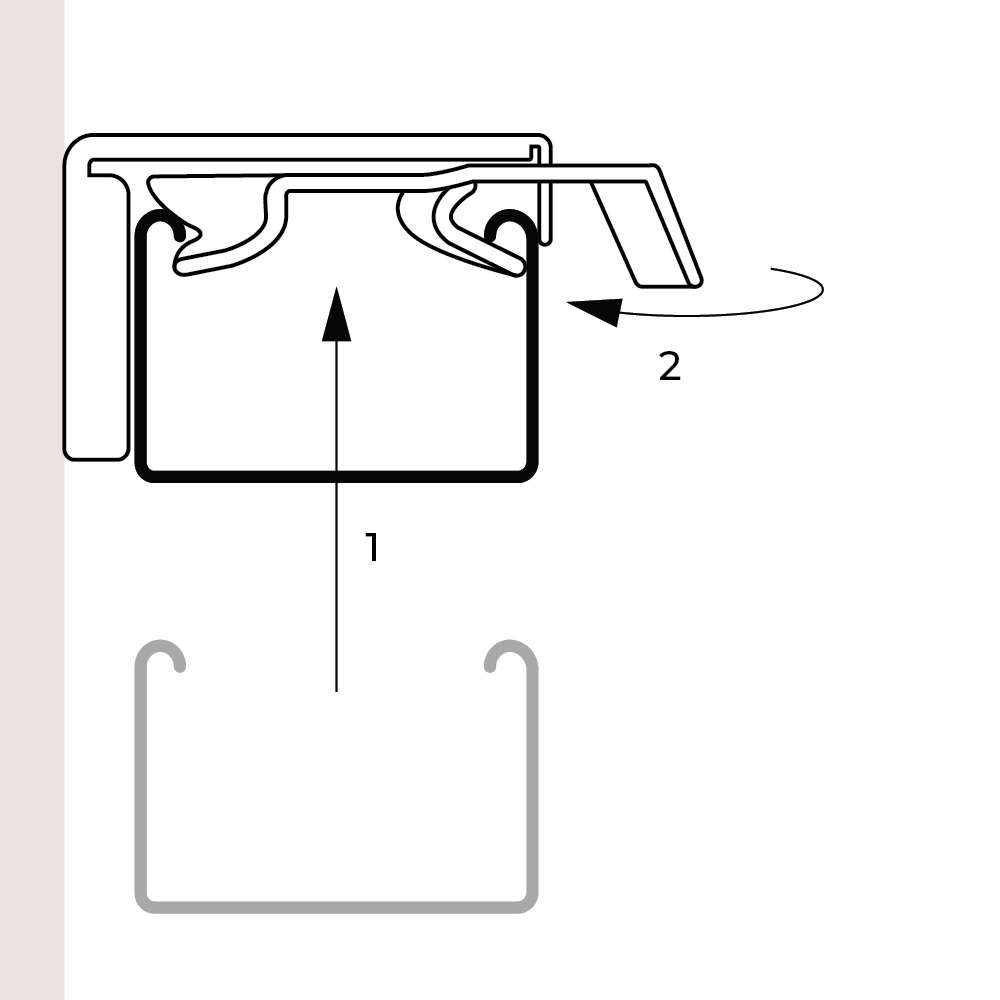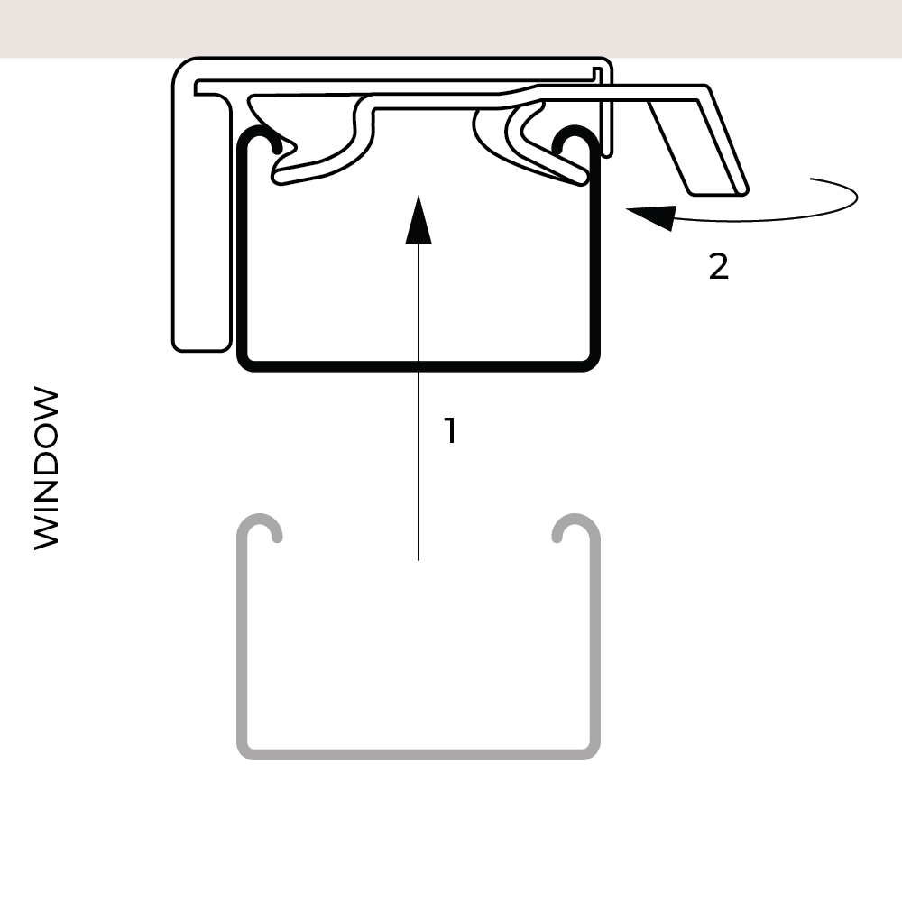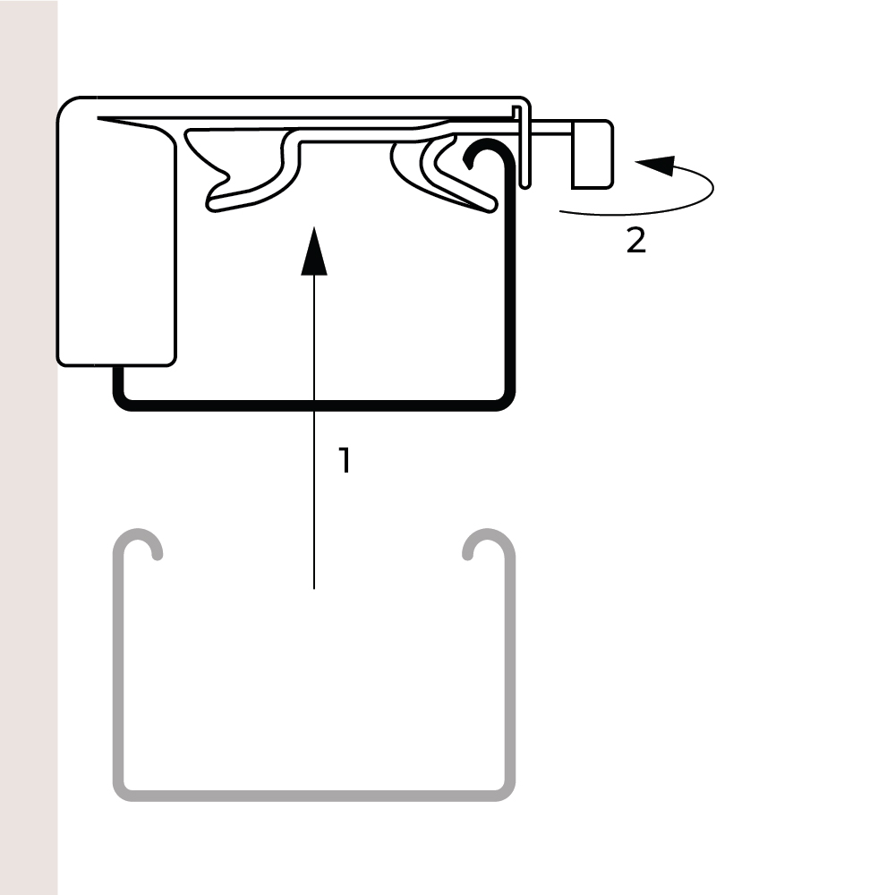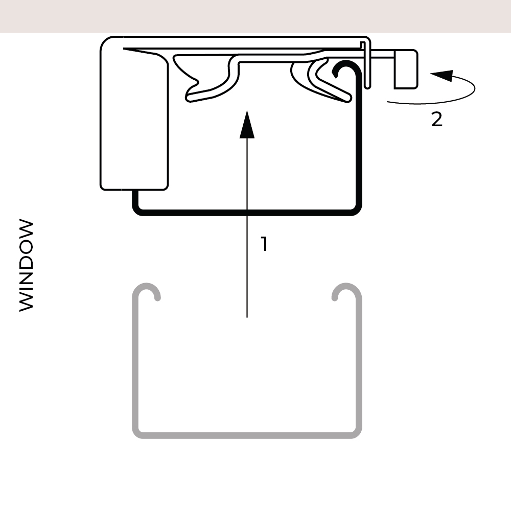 Insert the headrail into the bracket and secure it in place by closing the lock lever